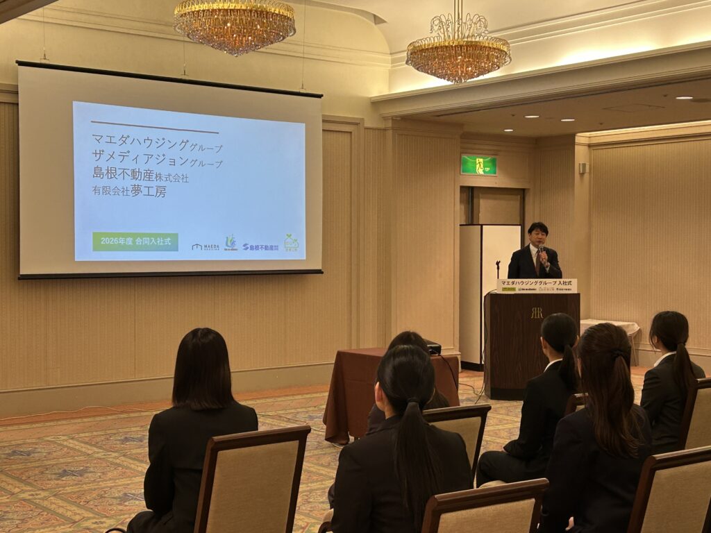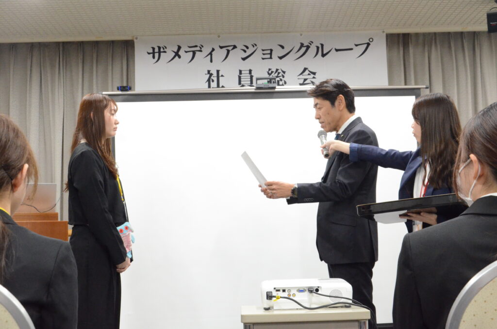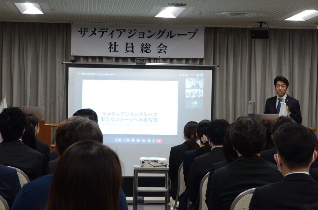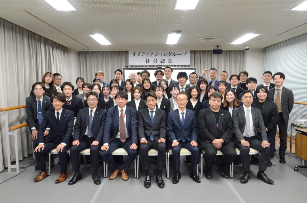 ザメディアジョングループは2026年4月1日に、グループ全体での合同入社式を開催しました。全体で7社46名で、リーガロイヤル広島にて開催。厳粛で高級感のある良い式になりました。