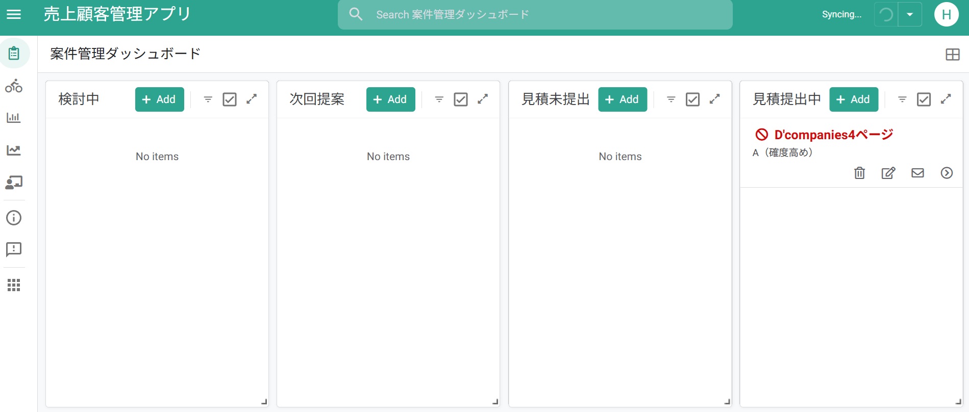 スプレッドシート(エクセル)で一覧化させていましたが、見にくい&ツールを導入すると高い…!営業の見込み・進捗案件用のアプリを作成。企業データから、営業進捗状況の情報を紐づけて…!?