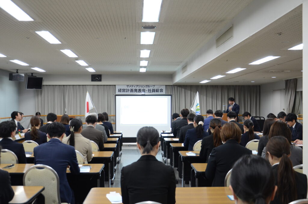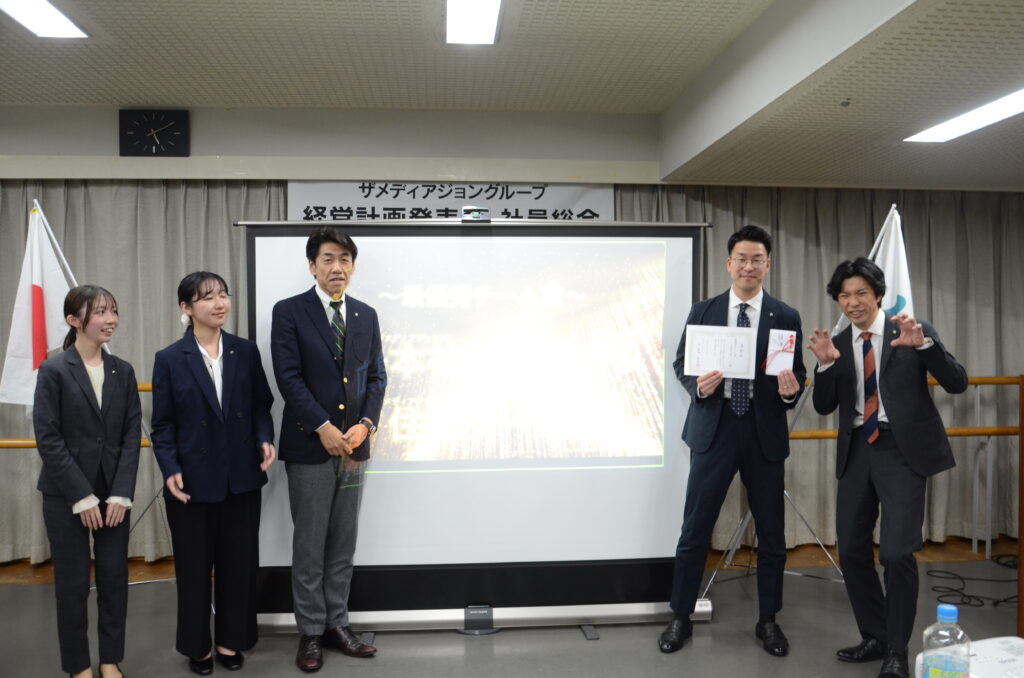 ザメディアジョングループは2026年1月6日に、経営計画発表会を開催致しました。日頃お世話になっている金融機関様などをお招きし、昨年の業績速報と今年の方針を発表。その後は社員総会を開催し、各プロジェクトの進捗報告や社員表彰などを行いました。