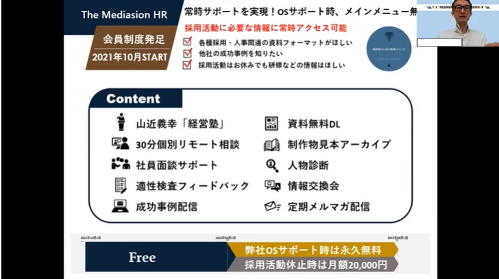 今年は「選考・内定辞退の防止のコツ」を中心に、2022新卒採用市場の総括、そして来期2023採用に向けての施策をお伝えしました。そして創業者山近の講演、新サービス発表も実施。