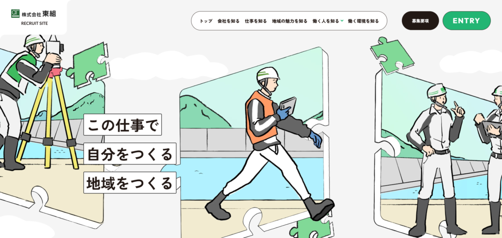 BtoB企業や建設・製造業など、学生が「自分とは無縁」「厳しそう」と感じがちな業界ほど、イラストを用いることで親しみやすさを演出し、エントリーへの心理的なブレーキを外しています。