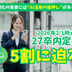 【気になるNEWS】27卒就活は「AI」が標準装備?内定率46%超の早期化と、中小企業が知っておくべき「学生の変化」《27卒×AI 前編》